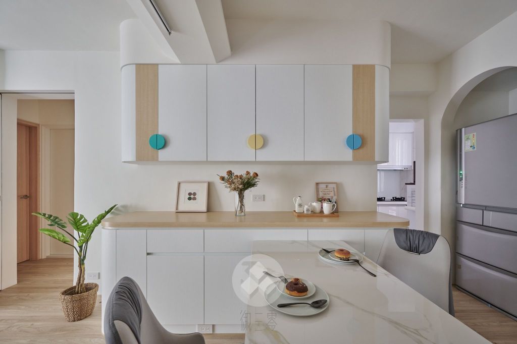 開放式空間設計對親子宅來說有諸多優點。最主要的好處是「視線通透」,家長可以隨時掌握孩子的動態,確保其安全,並及時阻止可能發生的危險行為。例如,將書房或廚房設計成開放式或半開放式(如矮牆、玻璃隔間),大人在工作或備餐時也能看顧到在客廳活動的孩子。