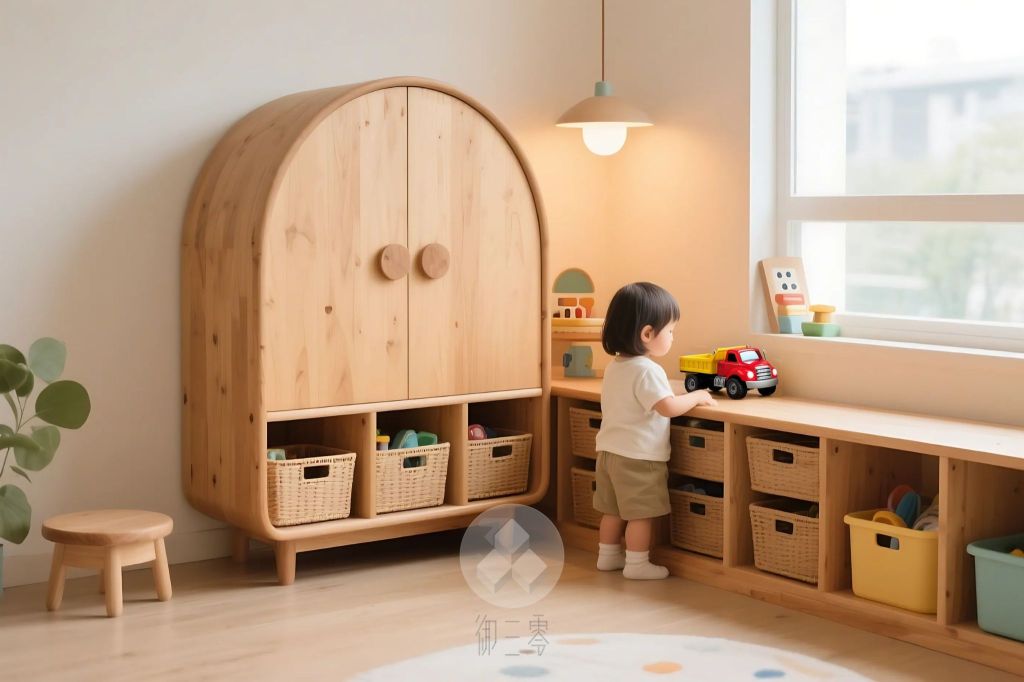 收納是親子宅設計中非常重要的一環。隨著兒童的成長,收納需求會從玩具、書籍轉變為衣物和收藏品。為了培養孩子自行收納的好習慣,建議設計開放式櫃子,讓物品一目了然,方便拿取和歸位。