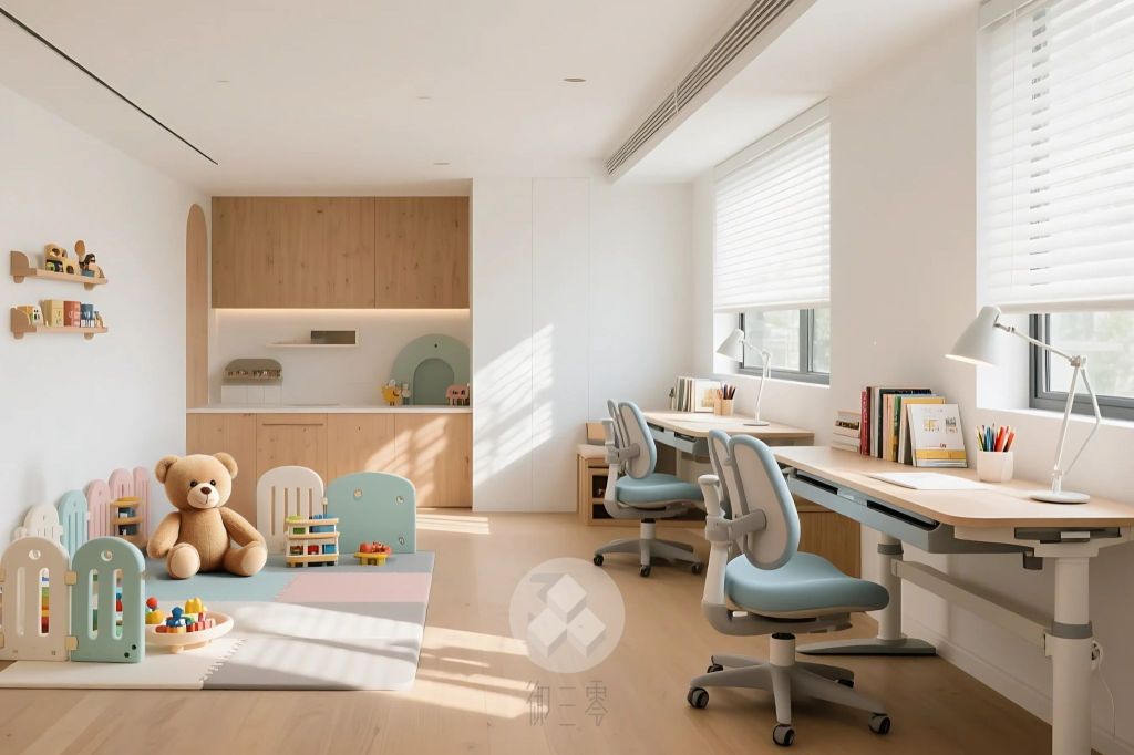 空間預留彈性也有助於空氣流通。在學齡前(約6歲以前),空間規劃應以「區域」為主,預留更多彈性。孩子上學後(6歲以後),則應開始規劃獨立的休息和學習區域。學習區的桌椅應選擇符合人體工學且高度可調整的款式,以適應孩子身高的快速變化,並確保適宜的燈光。