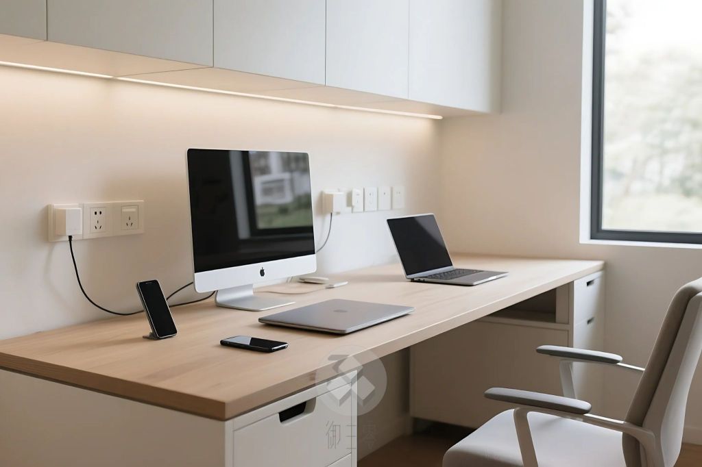 - 數量充足:建議每位使用者至少預留 2 個插座。若書房為多人共用(如一家四口),保守估計需 8 個插座(手機、平板、筆電各需一個)。