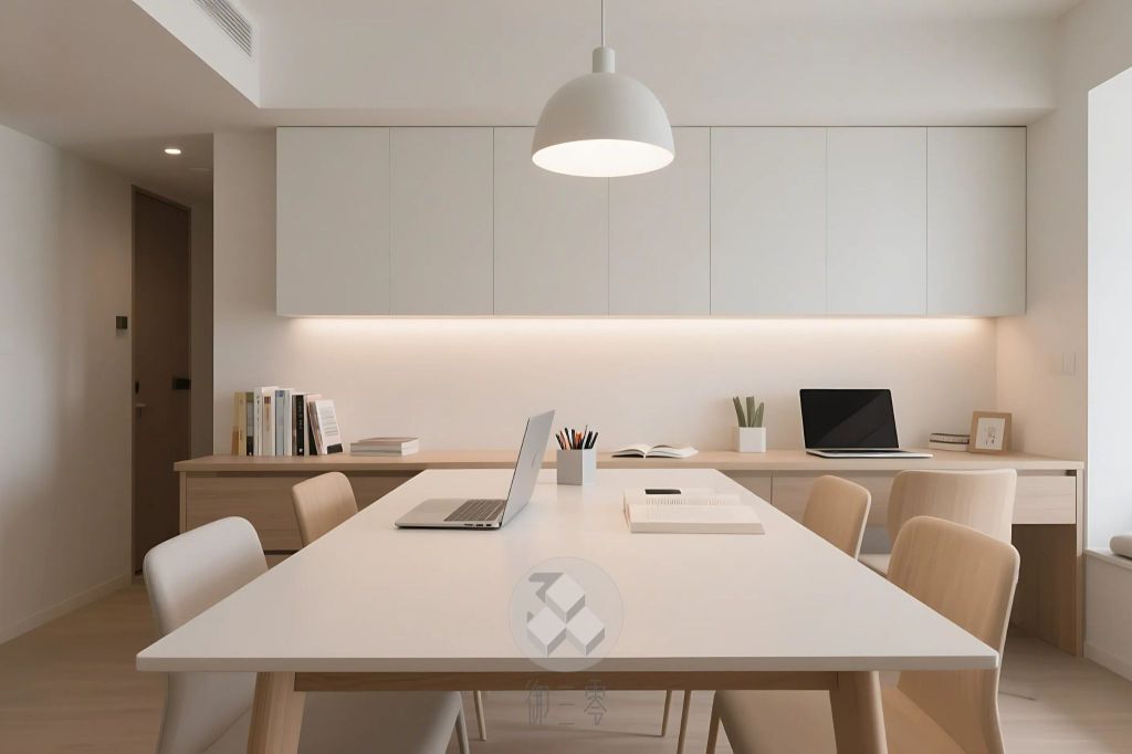 - 複合式餐桌/中島:對於小坪數居家,可將餐桌或中島區域設計為複合式辦公區。這適合使用筆電或平板工作者,在用餐時間後可變為辦公、親子共讀或親子作業的空間。這類空間應方便收納筆電、文件,培養隨手收好的習慣。